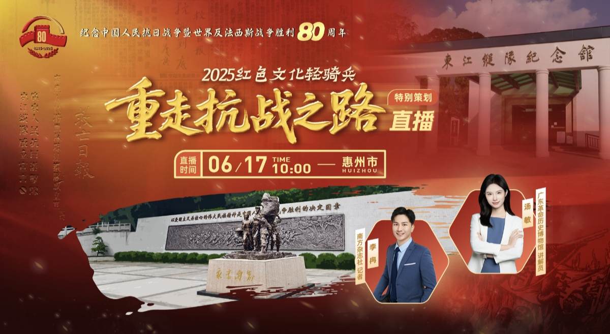 2025年是中国人民抗日战争暨世界反法西斯战争胜利80周年。广东革命历史博物馆联合南方杂志社、南方+客户端共同推出“2025红色文化轻骑兵:重走抗战之路”直播特别策划正式启动活动。6月17日10:00