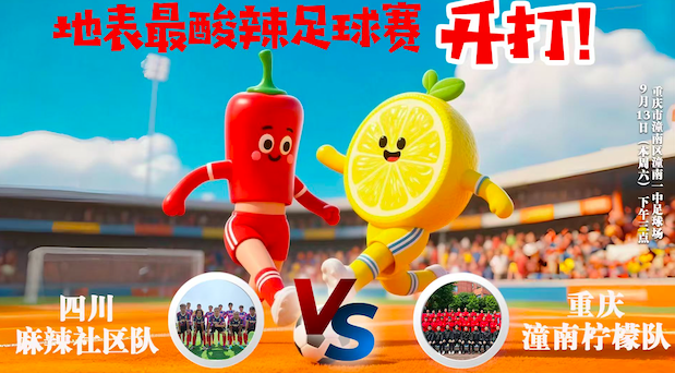 四川麻辣社区足球队接“渝超”队伍之一的重庆潼南柠檬足球队“英雄帖”,应战足球友谊赛!现场还有安岳柠檬啦啦队助阵,川渝球迷来雄起!