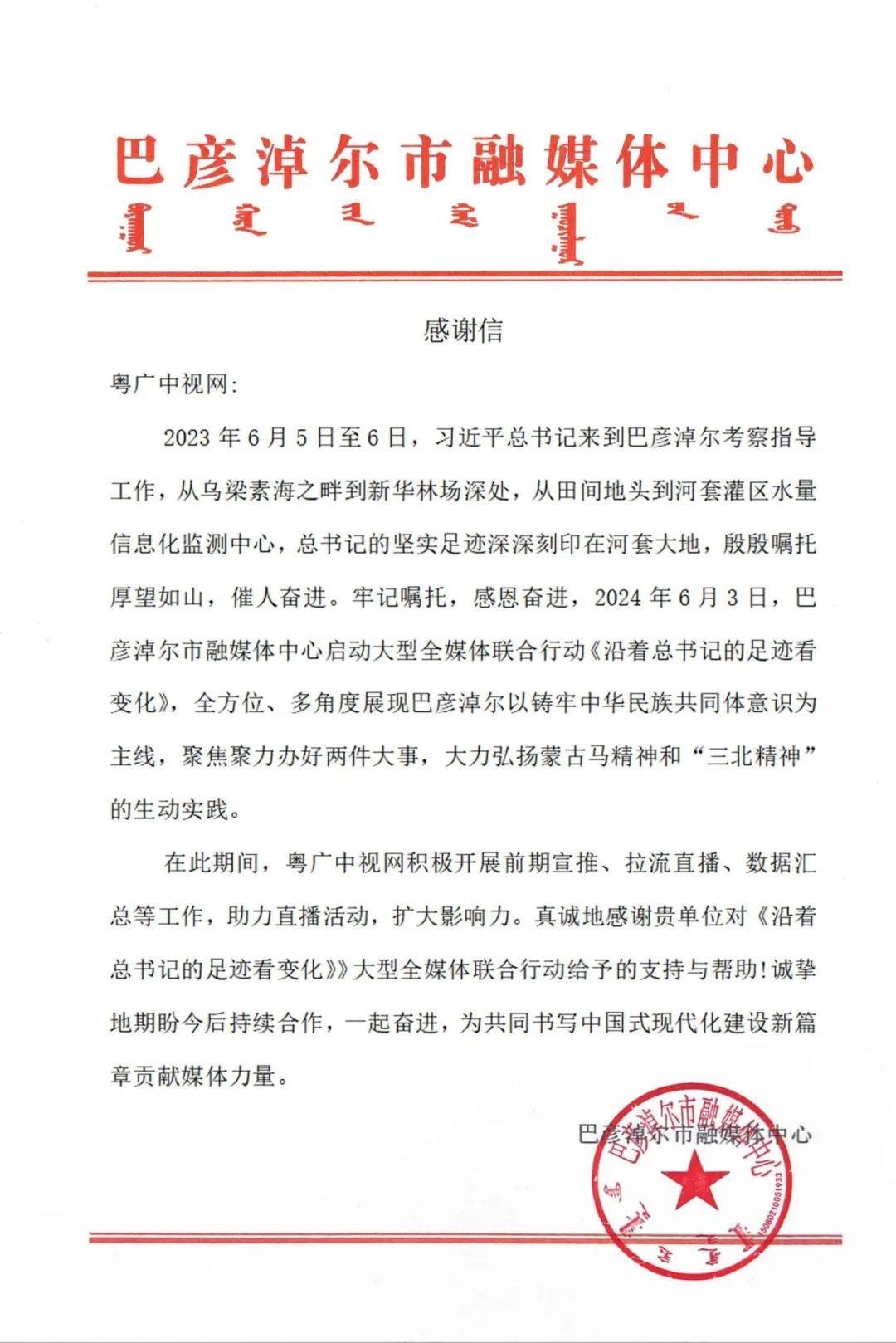 通过多样化、高质量的内容输出,粤广中视网在新媒体领域树立了专业、及时、全面的品牌形象,获得多家主流媒体的感谢信,并给与粤广中视网团队高度评价及认可。